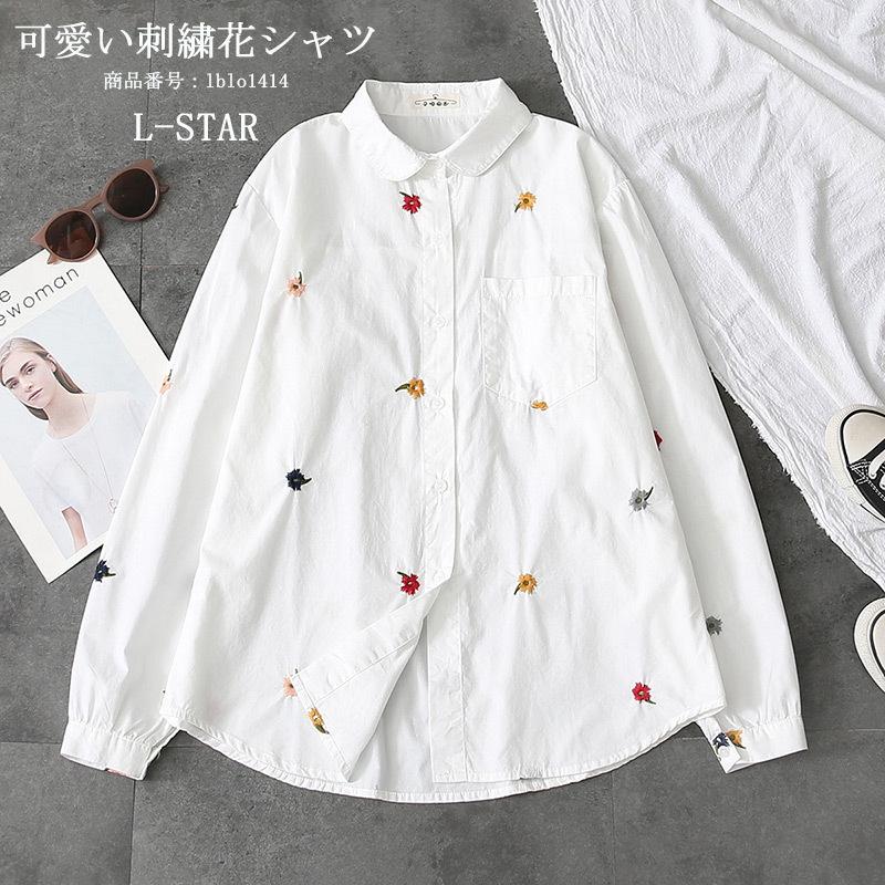 シャツ 白シャツ レディース ブラウス 長袖シャツ 長袖 刺繍 花柄 薄手 可愛い シャツブラウス 前開き ホワイト 春 秋 カジュアル コットン 快適 送料無料 Lblo1414 L Star 通販 Yahoo ショッピング